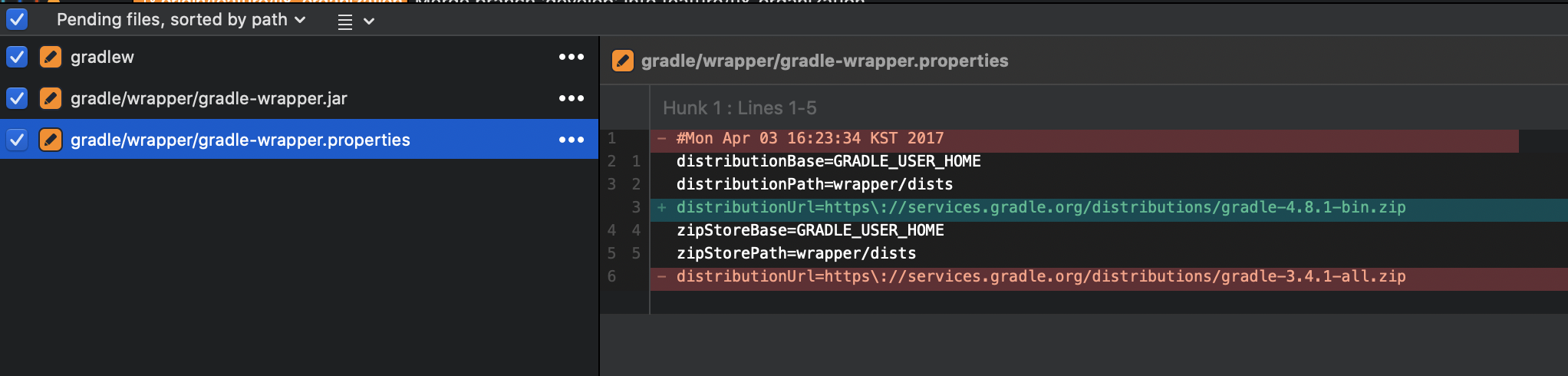 아래 Git log를 보고 Gradle버전이 변경된 걸 보고 힌트를 얻었습니다.