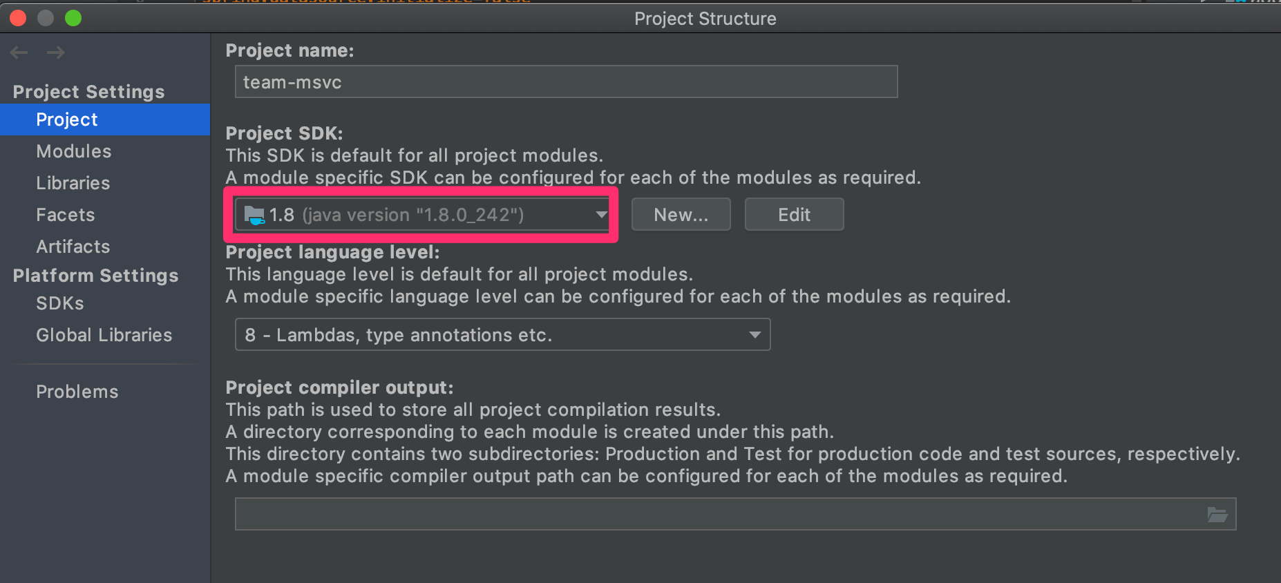 1. Project SDK 1.8로 설정(단축키 Cmd + ;)