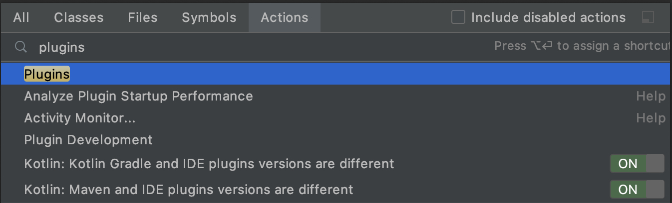 Actions를 검색하는 단축키로 자주 사용하는 단축키 중 하나입니다.