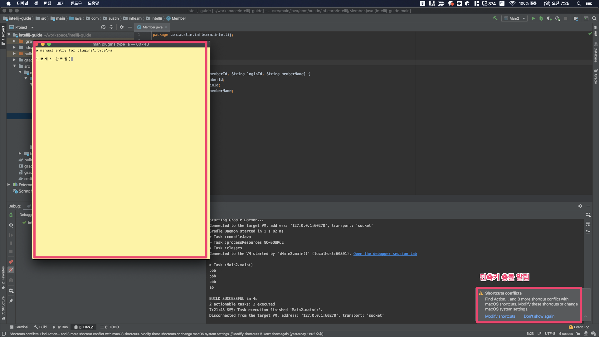 다시 IntelliJ에서 단축키를 실행하시면 정상적으로 동작하는걸 확인할 수 있습니다.